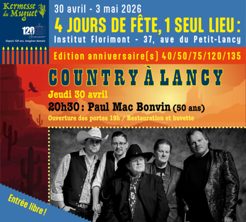 37 avenue du Petit-LancyPetit-Lancy (1213)Un Festival Country à découvrir les 30 avril et 1er mai 2026 à l'Institut Florimont.